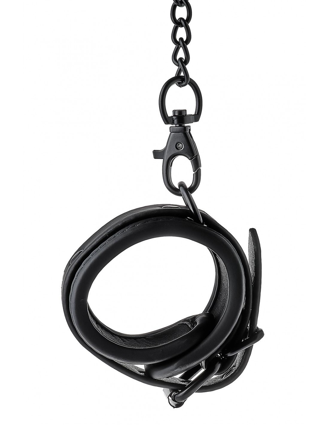 La chaîne maintient les poignets ensemble. La chaîne est détachable d'un côté avec un