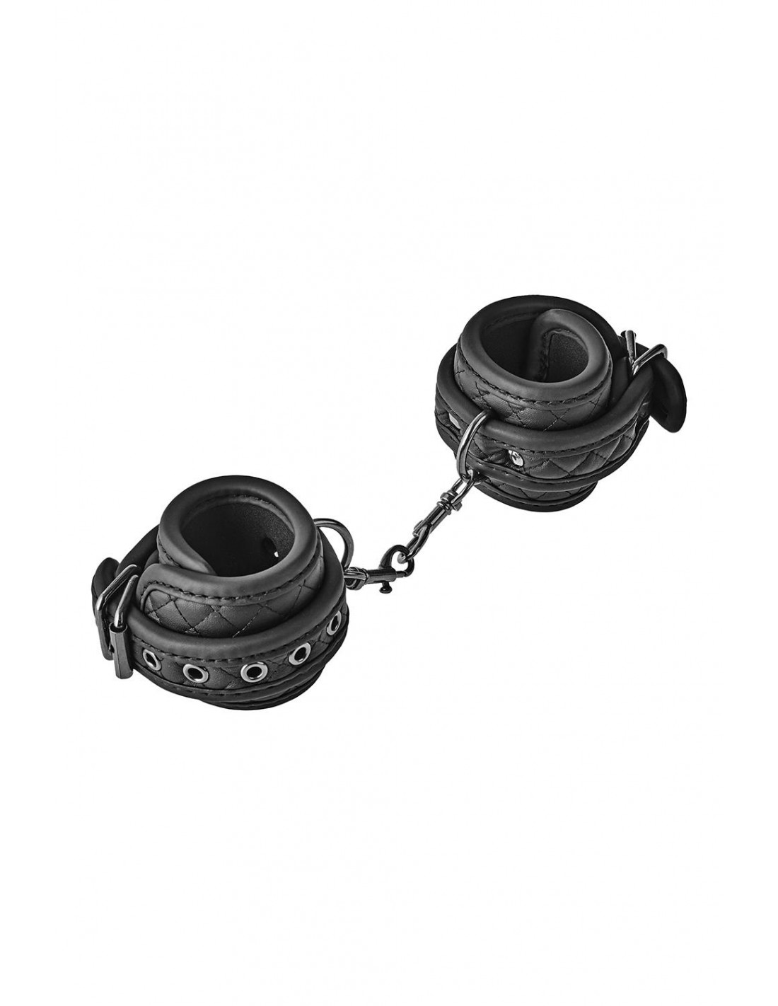 Cette paire de menottes de la collection Blaze de produits de bondage a un noir