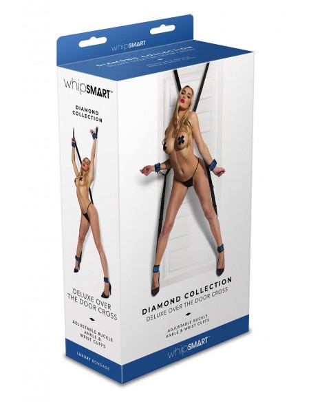 Les menottes érotiques à quatre voies pour poignets et chevilles sont idéales pour tout amateur de bondage. Les menottes velcro Whipsmart Diamond Deluxe Over the Door Cross à chaque extrémité sont réglables et détachables pour plus de polyvalence, et se fixent facilement à n'importe quel cadre de porte avec quatre haltères. Jouez avec le placement des menottes pour une polyvalence totale et découvrez un jeu de retenue sur tout le corps !