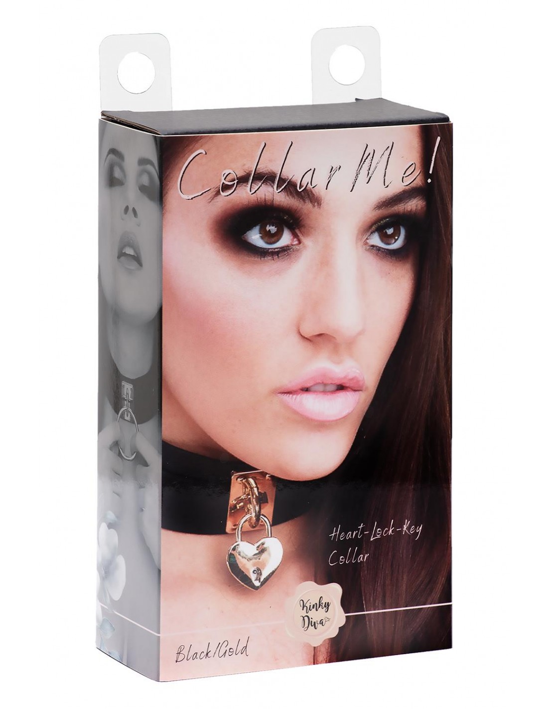 KINKY DIVA HEART LOCK & KEY COLLAR BLACK/GOLD