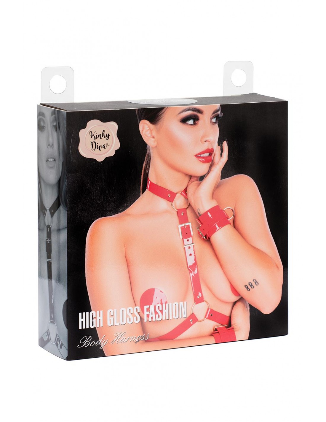 Kinky Diva – Harnais de corps brillant. Ce harnais de corps brillant Kinky Diva est un véritable accessoire fétichiste de haute couture. Super sensuel et élégant sur votre peau nue, mais aussi idéal à porter sur un ensemble de lingerie super sexy ou en combinaison avec des articles en maille rouge ou en résille. Super glamour ! Ce harnais de corps est bien sûr également parfait en combinaison avec les articles BDSM Kinky Diva High Gloss.Matière : cuir végétalien verniRéglable de S à L / XLTéléchargez le lookbook Kinky Diva High Gloss