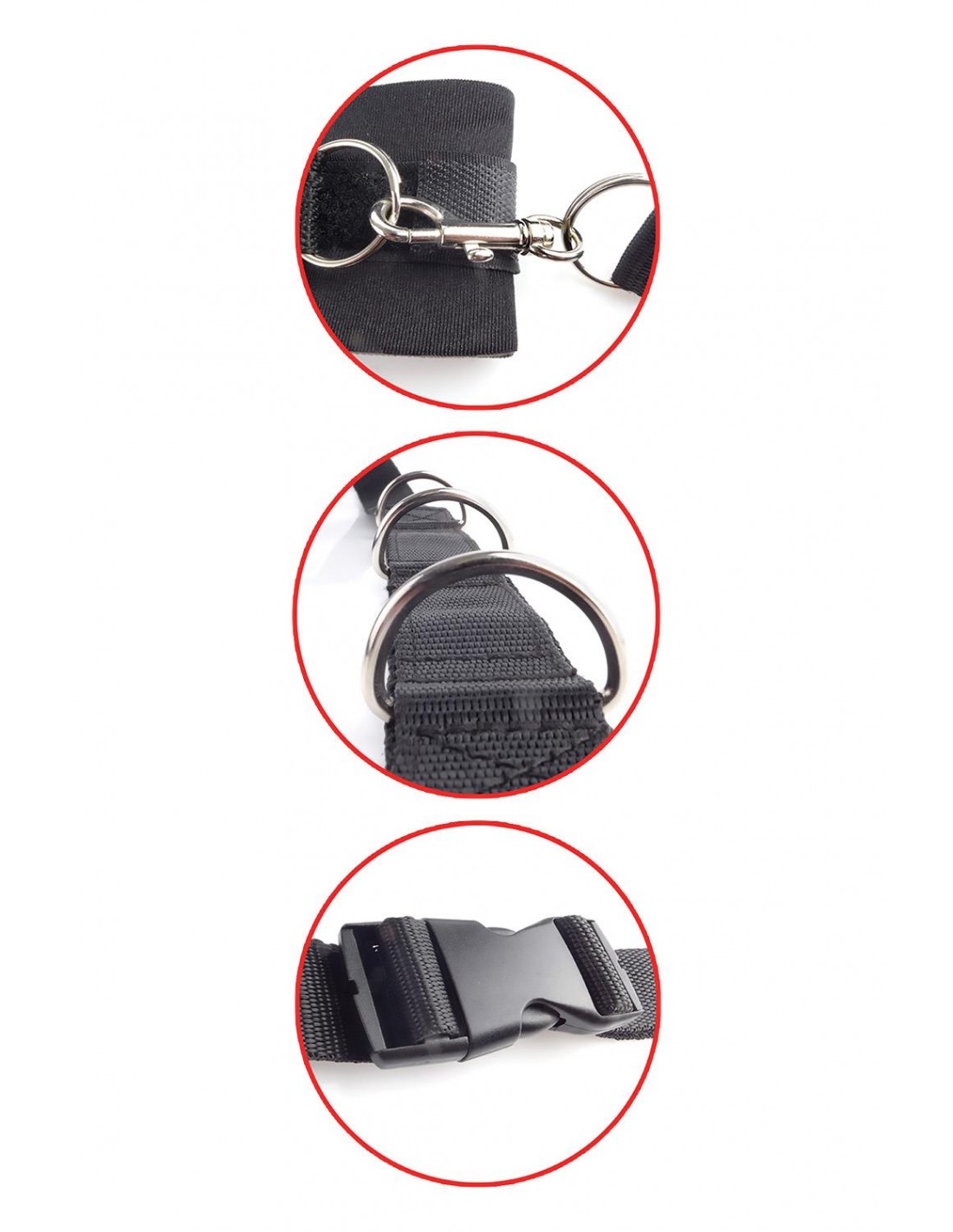 Transformez votre lit en un terrain de jeu de passion avec le système de retenue de lit Ultimate. Cet ensemble de bondage facile à installer est tout ce dont vous avez besoin pour profiter d'une nuit de fétichisme et de plaisir dans votre propre chambre, en utilisant le lit que vous possédez déjà ! Vous avez toujours rêvé d'être attaché aux montants du lit, mais que faire si votre lit n'en a pas ? Ce système de retenue polyvalent comprend deux grandes sangles en nylon qui s'enroulent autour de votre tête et pied de lit et se connectent à 4 attaches et poignets. Chaque sangle de tension comporte 6 anneaux en D métalliques qui vous permettent d'attacher les attaches où vous le souhaitez, créant ainsi des scénarios de bondage élaborés sans faire de nœuds ni utiliser de matériel. Le kit peut être utilisé avec n’importe quelle taille de matelas et s’installe facilement en quelques minutes. Il est parfait pour les lits sans montants de lit et peut également être utilisé sur les canapés. Les quatre attaches en nylon réglables sont dotées de clips métalliques robustes qui se connectent aux anneaux en D de la sangle de tension à une extrémité et aux poignets réglables de l'autre. Faites simplement glisser la sangle de tension autour de votre tête de lit, tirez la sangle jusqu'à ce qu'elle soit serrée, puis fermez la pince autobloquante pour maintenir la sangle en place. Répétez les mêmes étapes avec votre pied de lit et vous êtes prêt à profiter d'une nuit de jeu de bondage léger. Les poignets s'ajustent facilement à vos poignets ou à vos chevilles, vous permettant d'explorer de nouvelles positions que vous n'auriez jamais cru possibles. Utilisez votre imagination et il n'y a pas de limite au plaisir !Comprend : Sangles réglables pour tête de lit et pied de lit 12 anneaux en D pour des centaines de combinaisons de retenue 4 attaches réglables Poignets et chevilles confortables