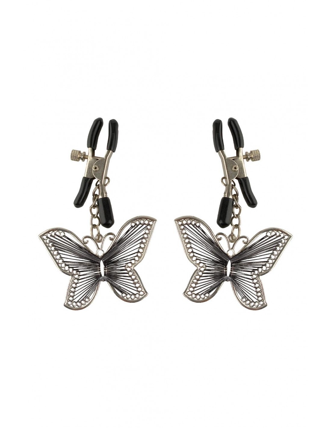 Faites ressortir vos tétons de plaisir avec ces pinces à tétons papillon pour débutants. Fabriquées avec des clips métalliques durables et recouvertes de doublures en caoutchouc souple, ces pinces sont parfaites pour les débutants et les amateurs de fétichisme. La quantité de pression que vous appliquez sur le mamelon est réglable en tournant la vis, tandis que les papillons vous offrent une stimulation subtile à chaque mouvement.