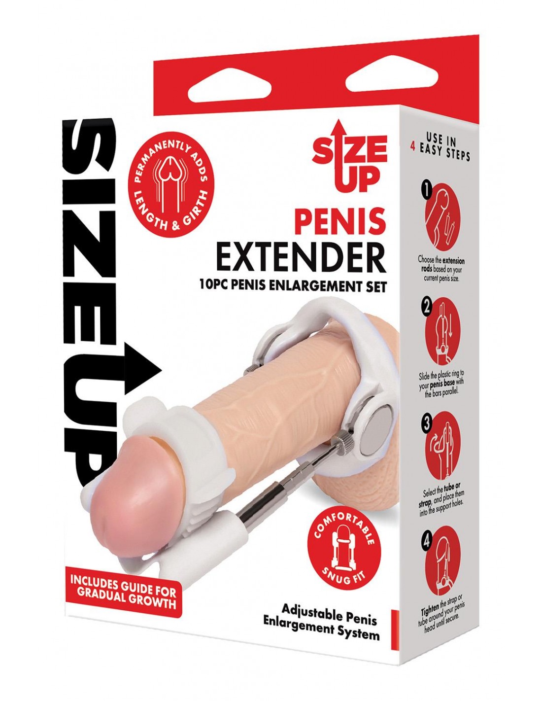 Cet extenseur pénien redresseur vous aidera à faire exactement cela. L'extenseur de pénis est conçu pour la croissance progressive de votre pénis. Le kit de 10 pièces est livré avec tout ce dont vous avez besoin et est fabriqué à partir de matériaux sans danger pour le corps, vous pouvez donc améliorer votre taille sans aucun risque pour votre santé. Les outils inclus aident à redresser, allonger et agrandir votre pénis. Ajustement confortable et ajusté Ajustable pour toutes les tailles Tiges extensibles pour l'allongement Fabriqué en silicone sans danger pour le corps et en acier inoxydable Longueur : 6,3 pouces / 16 cm Diamètre 1,37 pouce / 3,5 cm Poids : 0,43 lb / 195 gr Inclus : Dispositif d'extension du pénis Sangle de confort Tiges d'extension Tube en silicone Manuel d'utilisation