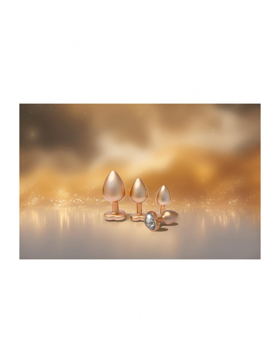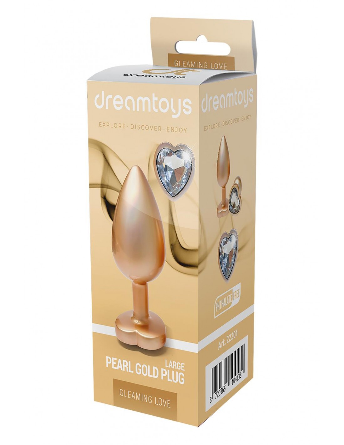 La collection Gleaming Love présente ce plug anal de petite taille avec finition perlée et pierre précieuse. Fabriqué en aluminium léger et lisse et sans couture, ce jouet de plaisir est facile à glisser et la base évasée assure un sentiment de sécurité tout en gardant le bijou confortablement assis entre les fesses. Ce plug orné de bijoux est joliment décoré d'une délicate pierre précieuse en forme de cœur. De la pointe à la base, le plug anal sans couture présente un éclat nacré qui se marie à merveille avec l'éclat de la pierre précieuse assortie. La forme conique du plug allie facilité d'utilisation et plaisir érotique de la porte arrière. Le plug Gleaming Love peut être chauffé ou refroidi dans l'eau avant utilisation pour procurer des sensations supplémentaires. Un sac de rangement en tissu doux et velouté qui se ferme avec un cordon de serrage est inclus. Grand plug : longueur 9,5 cm diamètre 4,3 cm