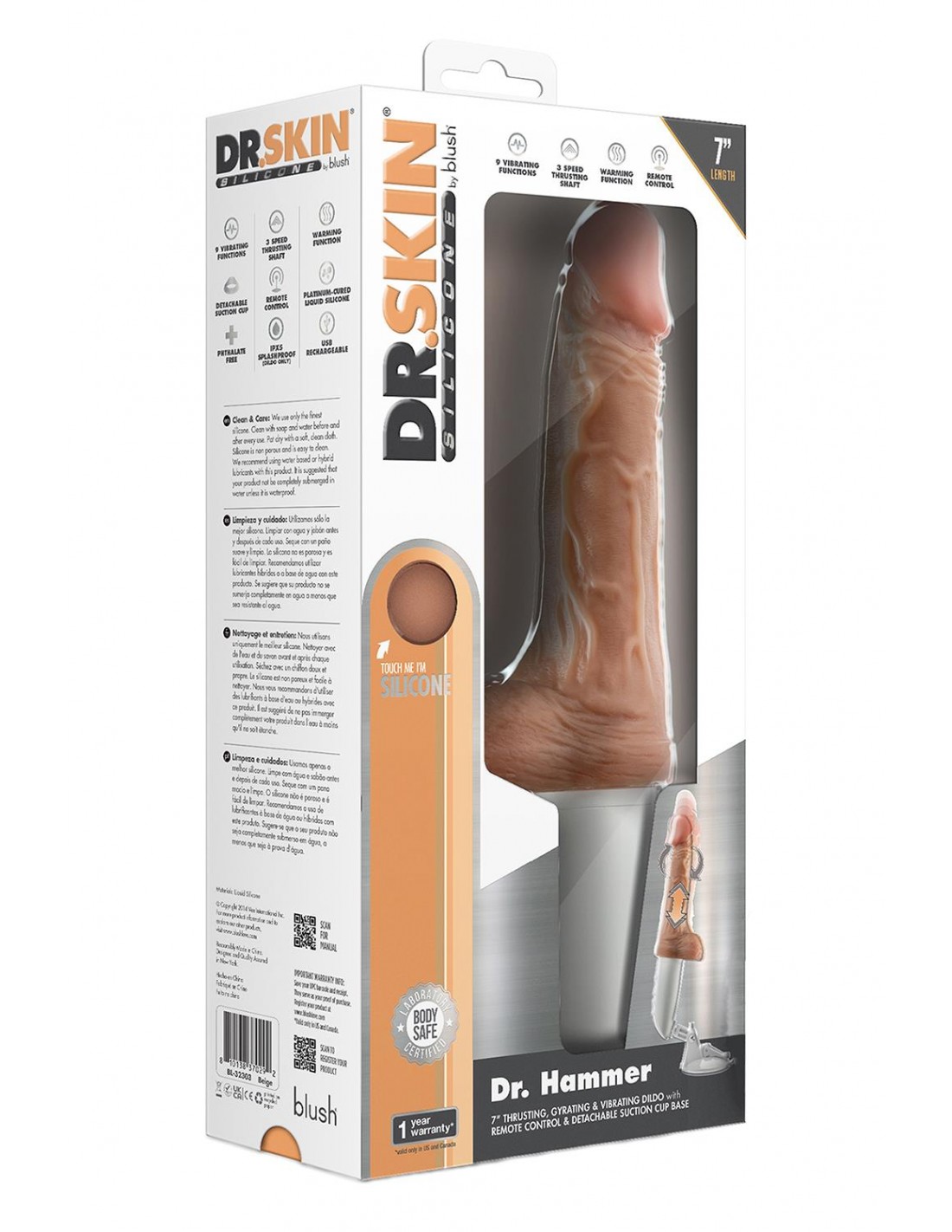 Le Dr. vous recevra maintenant. Présentation du Dr. Hammer, le puissant gode vibrant réaliste de 7 pouces prêt à vous prescrire des niveaux élevés de plaisir intime. Avec une poignée ergonomique et une télécommande sans fil, vous avez le pouvoir de contrôler vos désirs avec ce jouet sexuel, en explorant une large gamme de sensations avec 9 puissantes fonctions de vibration et 3 vitesses de poussée/gyration palpitantes. La technologie de gyration avancée offre des pompes continues de plaisir rythmique, avec une fonction de réchauffement supplémentaire qui enflamme les désirs de l'intérieur, vous aidant à vous conduire vers des orgasmes fantastiques. Fabriqué avec une tige en silicone liquide durci au platine de qualité supérieure, le gode s'adapte à votre corps pour un confort inégalé et une pénétration maximale. La base à ventouse réglable ouvre un tout nouveau monde de possibilités, vous permettant de profiter du plaisir en mains libres sur n'importe quelle surface lisse. La mise sous tension est facile avec le chargement USB, garantissant un plaisir sans fin sans aucune interruption en solo ou avec un partenaire. Votre ordonnance est faite, le Dr Hammer est prêt à vous livrer ! 9 fonctions de vibration et de rotation avec 3 vitesses de poussée uniques Poussée et rotation à distance pour une stimulation sexuelle avancée Tige en silicone liquide durci au platine Fonction de sensations de réchauffement Rechargeable par USB Équipé d'une base à ventouse robuste Longueur 7 pouces / 17,7 cm Longueur insérable 5,5 pouces / 13,9 cm Largeur 1,75 pouce / 4,4 cm
