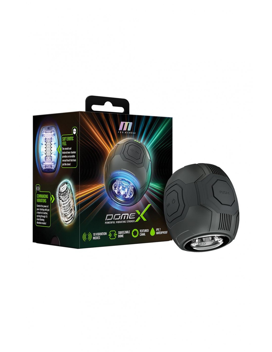 Découvrez la puissance de caresses de nouvelle génération avec le M For Men Dome X. Ce masturbateur masculin automatique est conçu pour ceux qui exigent une qualité et une commodité exceptionnelles pour leurs jeux en solo. Présentant un design élégant et futuriste, le Dome-X est doté d'une poignée externe facile à presser qui vous permet d'appliquer une pression en toute simplicité, intensifiant le plaisir du bout des doigts. Choisissez parmi 10 réglages de vibrations puissants, dont 3 vitesses et 7 modes, personnalisant vos sensations de vibration en fonction de vos envies. Avec un contrôle à un seul bouton, découvrez facilement votre mode préféré, testez votre limite et votre endurance jusqu'au bord de l'extase. La chambre interne douce et texturée offre une sensation confortable et réaliste avec une conception ouverte qui s'adapte à toutes les tailles. Les doubles couvercles protègent votre masturbateur et il est également facile à nettoyer. Il bénéficie d'un indice d'étanchéité IPX7 et est rechargeable par USB, offrant jusqu'à 45 minutes d'autonomie sur une charge complète. Il est temps d'entrer dans une nouvelle ère de technologie de caresses. 10 réglages de vibrations puissants, dont 3 vitesses et 7 modes Conception de dôme facile à saisir. Pressez pour intensifier le plaisir Le contrôle à un seul bouton permet des séances de caresses sans effort Chambre intérieure douce et texturée. Extrémité ouverte pour s'adapter à toutes les tailles IPX7 Submersible étanche Rechargeable par USB magnétique Allez plus loin et plus fort qu'avant ! Fabriqué en ABS, TPE et silicone Longueur 4 pouces / 10,1 cm Longueur insérable 4 pouces / 10,1 cm Largeur 4 pouces / 10,1 cm Poids 17,1 oz / 485 gr