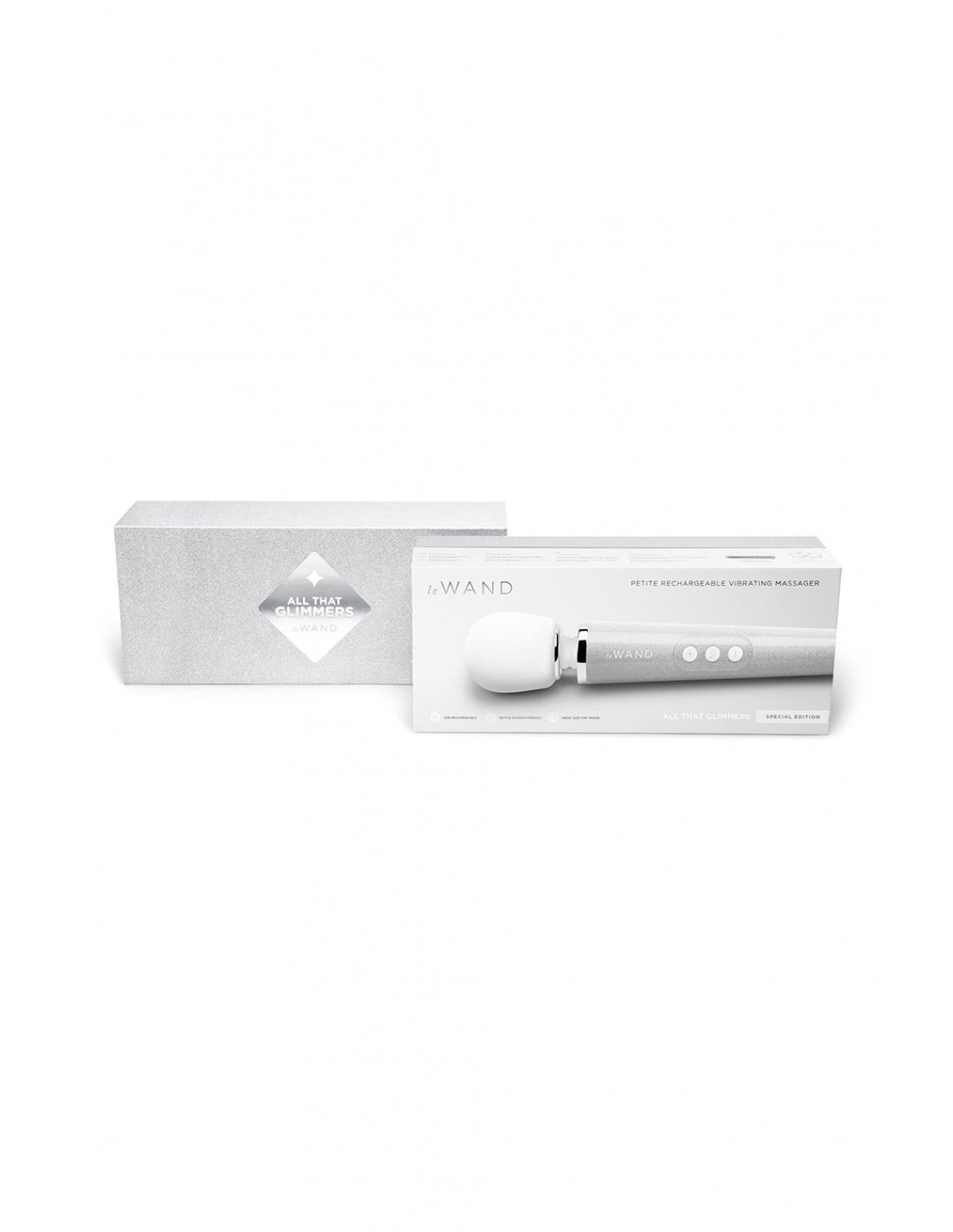 Lauréat des prestigieux prix Women's Health FEMTECH Awards, All That Glimmers est une édition spéciale de notre Le Wand Petite, un vibromasseur baguette polyvalent qui prouve qu'une grande puissance peut venir dans de petits paquets. Cette version plus petite de notre emblématique masseur Le Wand propose 10 vitesses de vibration et 6 modes de vibration. Idéal pour les débutants, le design élégant et stylé du Le Wand Petite est flexible et maniable pour stimuler toutes vos zones érogènes. Son design léger et confortable est idéal pour les mamelons, le cou ou tout autre endroit de votre choix. Sans fil, adapté à la douche et sans danger pour le corps, Le Wand Petite est parfait pour jouer en solo ou en couple, où que vos voyages de plaisir vous mènent. Sa batterie interne rechargeable par USB et son verrou de voyage en font le compagnon de voyage idéal pour tous vos fantasmes en déplacement ! L'ensemble All That Glimmers Special Edition Le Wand Petite est livré avec un guide du plaisir, un étui de voyage assorti, scintillant mais discret, une épingle pour montrer votre fierté de plaisir et un ensemble de vernis à ongles Rainbow Glimmer et de gel pour le corps pour faire de All That Glimmers, vous ! Chaque ensemble comprend : Masseur rechargeable Le Wand Petite Baguette émaillée Vernis à ongles Rainbow Glimmer Gel corporel Rainbow Glimmer Étui de voyage à paillettes Tension de la batterie = 3,7 V Vitesse du moteur sans charge = 6 900 tr/min + / - 10 % (« Sans charge » signifie que le moteur est testé sans le contrepoids, donc le moteur tourne plus vite) Vitesse du moteur en charge = 6 000 tr/min + / - 10 % (« Chargé » signifie que le moteur est testé avec le contrepoids, donc le moteur tourne plus lentement) À propos de le Wand Le Wand est une marque haut de gamme fondée par des femmes de masseurs vibrants personnels qui apportent une qualité inégalée à une industrie notoirement douteuse. Le Wand est à l'origine une baguette classique d'enfer (toute la puissance que vous pourriez souhaiter avec un design primé pour correspondre) et est maintenant devenue une gamme complète de jouets de premier ordre, palpitants et effrayants. Conçu pour le plaisir de tous les corps, Le Wand embrasse et défend l'intimité pour tous, avec des outils de plaisir puissants et polyvalents qui insistent pour vous amener au niveau supérieur. Nous sommes fiers d'être la référence des gens pour des orgasmes sur lesquels ils peuvent compter - encore et encore.Télécharger la présentation du produit Le Wand baguettes et accessoires.pdf