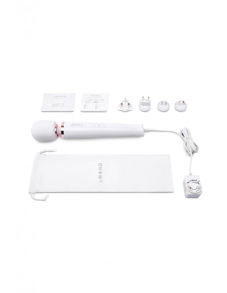 Le Wand Plug-In est un masseur vibrant de style classique de premier ordre qui offre une qualité inégalée avec un design primé. Ce vibromasseur alimenté par courant alternatif compatible dans le monde entier dispose de 10 vitesses de vibration distinctes et de 6 modes de vibration. La poignée élégante et douce au toucher et le cordon extra-long de 8 pieds le rendent facile à tenir et à naviguer sous plusieurs angles tandis que le cou flexible se plie pour le positionnement et le plaisir. Conçu pour le plaisir de tous les corps, Le Wand embrasse et défend l'intimité pour tous avec cet outil de plaisir puissant et polyvalent qui insiste pour vous amener au niveau supérieur. Fabriqué à partir de silicone 100 % sans danger pour le corps 10 intensités de vibration ultra-puissantes 6 modes de vibration Cordon d'alimentation de 2,4 mètres Cou flexible Livré avec un verrou de voyage Comprend un étui de voyage pratique et un guide de plaisir Emballage luxueux pour offrir Matériaux : Silicone et ABS sans danger pour le corps Taille : 34,0 (H) x 6,2 (P) cm Diamètre : 6,21 cm / 2,45 pouces Diamètre du cou : 5,0 cm / 1,97 pouces Circonférence : 19,5 cm / 7,69 pouces Poids : 1,29 lb / 585 g Durée d'utilisation : Illimitée Niveau de bruit maximal : < 68 dB Interface : Commande à 3 boutons Niveaux d'intensité : 10 Modes de vibration : 6 Tension de sortie de l'adaptateur = 5 V / 2 A Moteur RPM Français Pas de chargement = 8 000 tr/min + / - 10 % (« Pas de chargement » signifie que le moteur est testé sans le contrepoids, donc le moteur tourne plus vite) RPM du moteur chargé = 7 600 tr/min + / - 10 % (« Chargé » signifie que le moteur est testé avec le contrepoids, donc le moteur tourne plus lentement) Le classique fait son retour ! Nous avons pris notre baguette OG primée et y avons ajouté la fonction rétro parfaite pour permettre à nos chasseurs de puissance de faire leur travail. Découvrez le masseur vibrant enfichable Le Wand. Vous avez déjà eu un jouet sexuel qui s'est éteint pendant une séance torride ? Quel buzzkill total. C'est là que Le Wand Plug-In règne en maître. Avec son cordon extra long de 8 pieds, branchez-le simplement et préparez-vous à surfer sur des vagues continues de plaisir ou utilisez-le avec un partenaire pour une combinaison au-delà de l'orgasme des vibrations ultimes et de la pénétration. Compatible avec les accessoires en silicone OG et les couvertures de texture, le Le Wand Plug-In est conçu pour le plaisir de tous les corps. Le masseur vibrant enfichable Le Wand est-il étanche ? Non, il n'est ni étanche ni résistant aux éclaboussures. Ne l'utilisez pas sous la douche ou dans le bain. Comment nettoyer le masseur vibrant enfichable Le Wand ? Utilisez un chiffon humide et un savon antibactérien doux pour essuyer le jouet. Assurez-vous que le chiffon élimine tous les résidus de savon avant de laisser sécher le jouet. Vous pouvez également utiliser un nettoyant pour sextoys directement sur la zone d'utilisation et terminer avec un chiffon humide. Comment ranger mon masseur vibrant enfichable Le Wand ? Après le nettoyage, laissez sécher le masseur vibrant enfichable Le Wand à l'air libre. Ensuite, mettez-le dans la pochette de rangement fournie avec le jouet et rangez-le dans votre tiroir/boîte à trésors. Le masseur vibrant enfichable Le Wand est-il destiné à un usage externe ou interne ? Le masseur vibrant enfichable Le Wand est conçu pour fournir une stimulation à l'extérieur du corps. Découvrez notre collection d'accessoires pour ajouter de la texture à la vibration ou la convertir en vibrateur interne. À propos de le Wand Le Wand est une marque haut de gamme fondée par des femmes de masseurs vibrants personnels qui apportent une qualité inégalée à une industrie notoirement douteuse. Le Wand a été créé comme une baguette magique classique (toute la puissance que vous pourriez souhaiter avec un design primé) et est maintenant devenu une gamme complète de jouets de premier ordre, palpitants et effrayants. Conçu pour le plaisir de tous les corps, Le Wand embrasse et défend l'intimité pour tous, avec des outils de plaisir puissants et polyvalents qui insistent pour vous amener au niveau supérieur. Nous sommes fiers d'être la référence des gens pour des orgasmes sur lesquels ils peuvent compter - encore et encore.