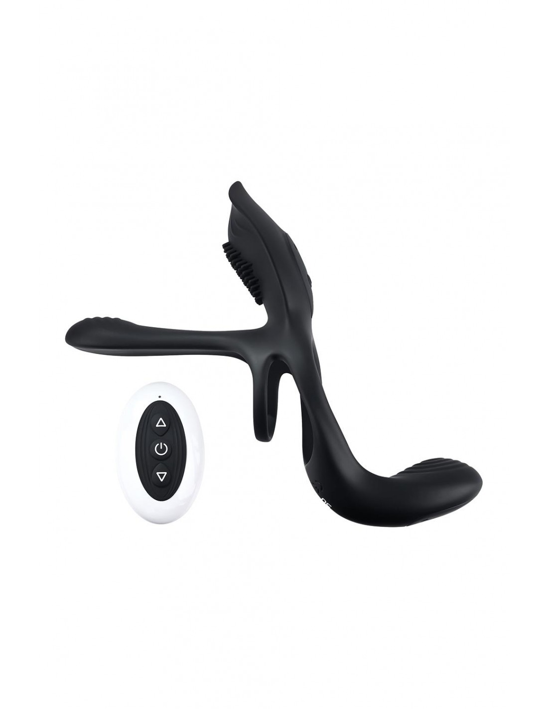 Découvrez une toute nouvelle façon de jouer avec The 3 Way, un anneau pénien unique en silicone doux comme du velours. La double boucle vibre tout en soutenant votre érection. 3 palpeurs texturés avec 10 vitesses et rythmes vous offrent des possibilités infinies de plaisir. Les textures et les picots soigneusement conçus offrent des sensations supplémentaires tandis que la télécommande permet de jouer en mains libres. La liberté de jouer ! Jouez avec moi (caractéristique principale) : 3 stimulateurs séparés à 10 vitesses Portée de la télécommande 30' / 9 mètres Vibration : 10 vitesses et rythmes Matériau : silicone sans danger pour le corps Sans phtalate ni latex Étanche et submersible Rechargeable : câble USB inclus Hauteur : 6,5 pouces / 16,5 cm Profondeur : 4,18 pouces / 10,6 cm Largeur : 2,01 pouces / 5,1 cm