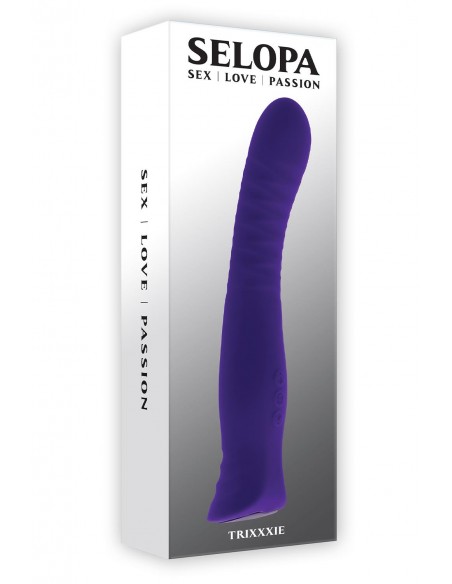 Trixxxie est un vibromasseur magnifiquement conçu, à la texture profonde, doté d'une flexibilité dans sa tige légèrement arquée et de la capacité unique d'aller et venir entre les modes de vibration sans cycle. 7 vitesses et modes de vibrationFabriqué en silicone sans phtalate ni latex et ABSRechargeable par USB, câble inclusHauteur : 8,75" / 22,2 cmProfondeur : 1,68" / 4,3 cmLargeur : 1,66" / 4,2 cmLongueur insérable : 5,75" / 14,6 cmDiamètre insérable 1,5" / 3,8 cmÉtanche
