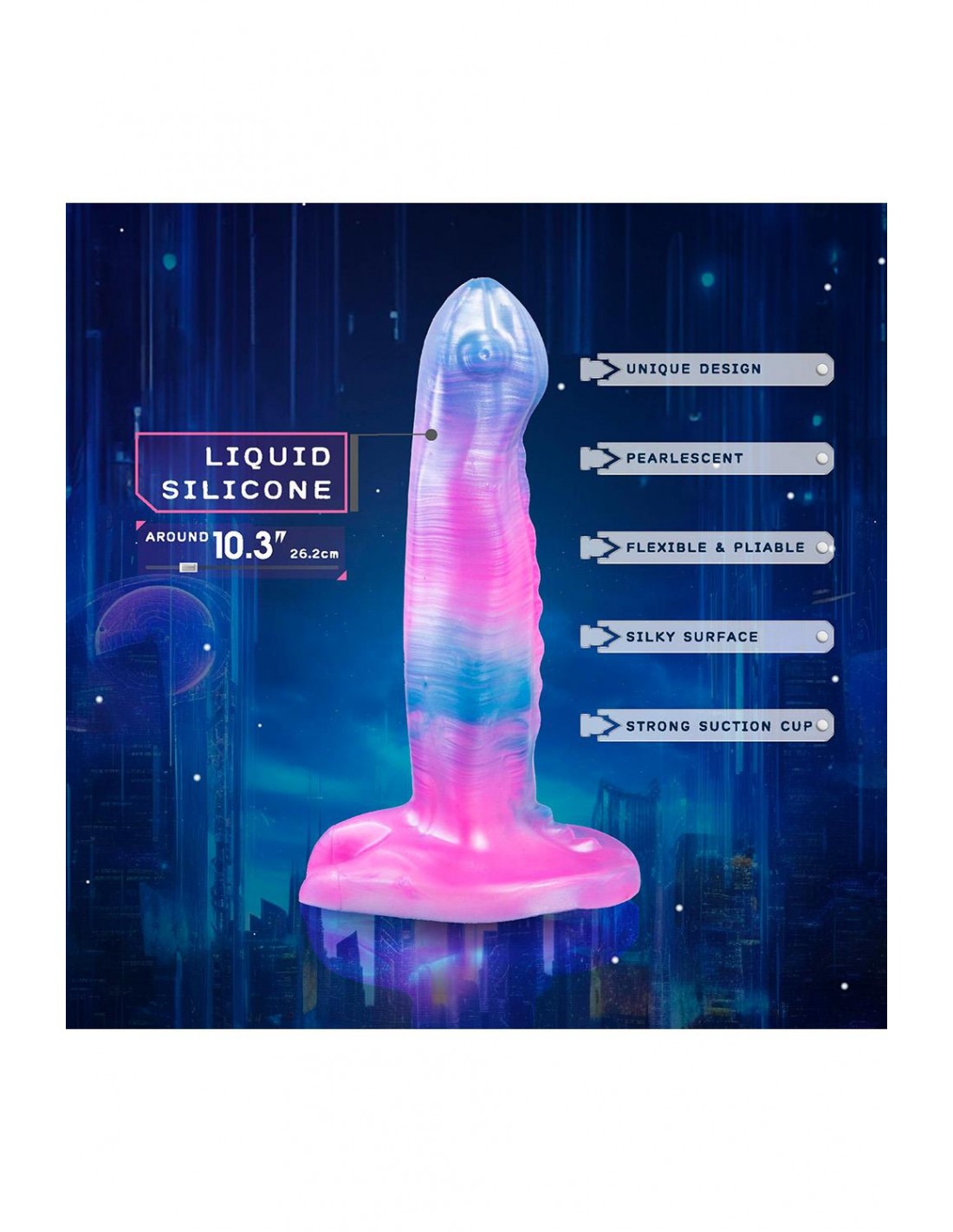 Gode monstre avec ventouse puissanteAvec effet nacréFabriqué en silicone liquideSurface soyeuseFlexible et pliableDesign uniqueVentouse forteLongueur 10,3 pouces / 26,2 cm