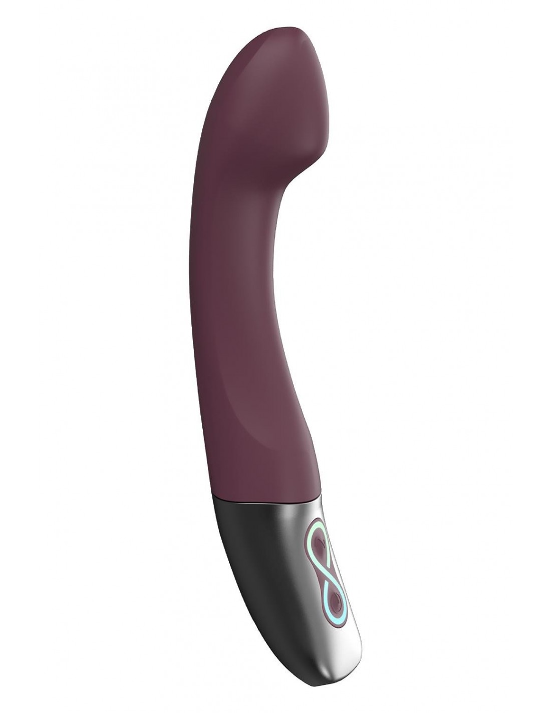 Vibromasseur point G rechargeableFabriqué en silicone et métalPoignée texturée en métalForte vibration avec 10 rythmesArbre pliableBouton de commande facile avec lumière LEDSilicone hygiénique avec surface soyeuseÉtanche IPX7Rechargeable par USB type-CLongueur insérable 14 cm