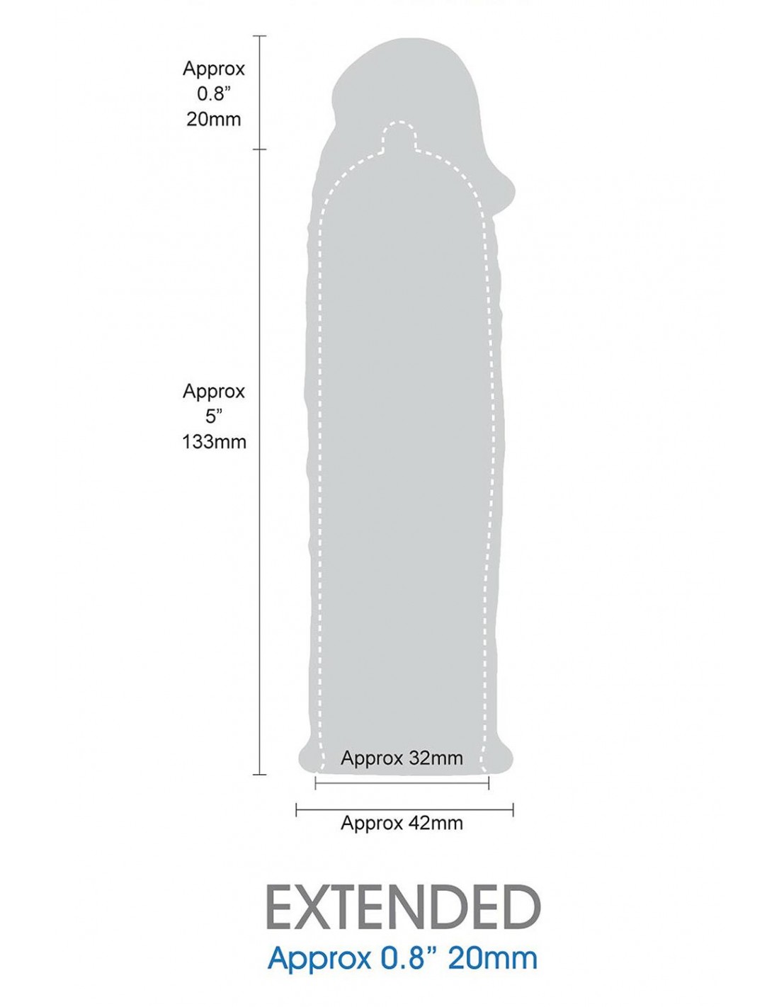 Extension de longueur : le manchon en silicone qui vous rend fort !Manchon pénien de 6 pouces, s'adapte à toutes les tailles d'ambianceMatériau élastique de qualité supérieureVeines et tête réalistes pour une stimulation encore plus agréableS'étend sur environ 0,8 pouce / 20 mm de longueurLongueur intérieure d'environ 5 pouces / 13,3 cmLargeur intérieure d'environ 3,2 cmAgrandissez votre érection avec cette gaine d'extensionAttention : ce produit n'est pas un préservatif
