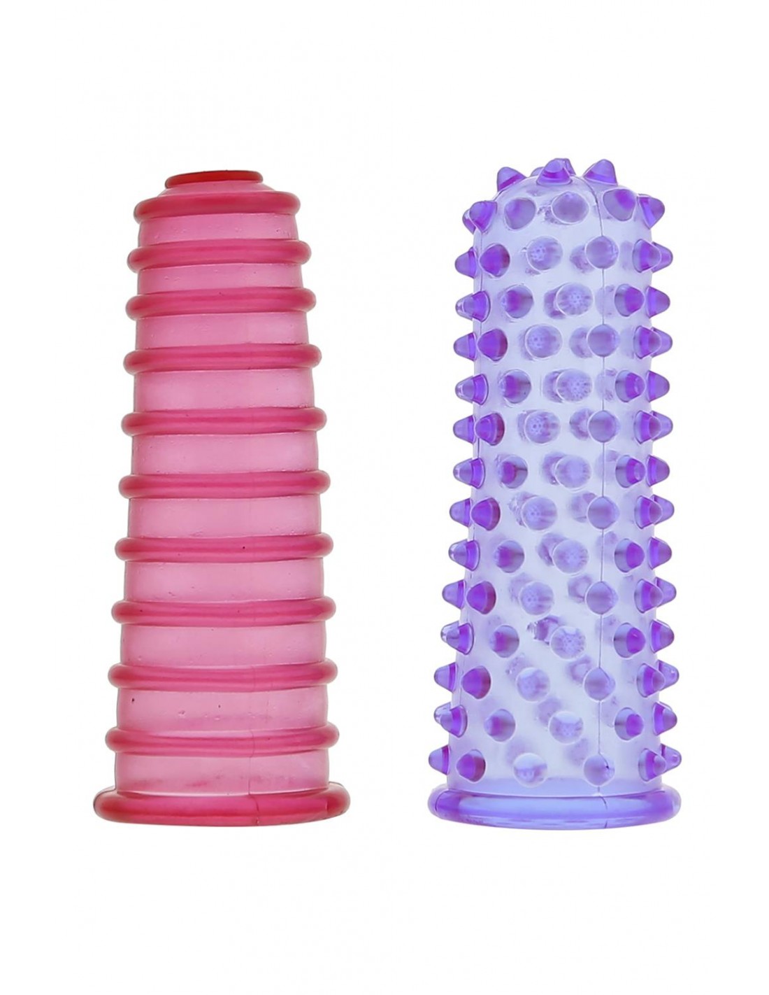 Un jeu de 2 manchons avec une surface picotée et une surface striée, qui peuvent être utilisés pour une stimulation supplémentaire lors d'un jeu en couple ou en solo. Les préservatifs d'extension sont faciles à nettoyer et sont réutilisables. Ces doigts lustrés en PVC à pointe bosselée et nervurée ont un aspect soyeux et sont faciles à nettoyer. Emballé par lot de deux dans les couleurs rouge et violet. Dimensions : Diamètre 3,0 cm. Longueur 8,0 cm.