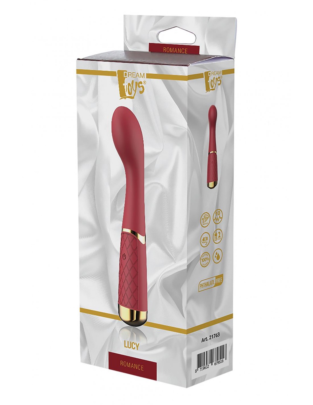Les produits Romance ont une couleur rouge rubis distincte et un aspect luxueux. Avec des performances de haute qualité, comme vous pouvez l'attendre des jouets de luxe Dream Toys. Comme les autres jouets Romance, le vibromasseur point G Lucy est élégant et romantique à l'extérieur, et plein de technologie à l'intérieur. Le vibromasseur pour point G Romance Lucy a une texture en forme de diamant dans le silicone doux de qualité alimentaire sur la poignée et une tige lisse. Il propose 3 vitesses et 7 rythmes de passion vibrants, tout en étant entièrement étanche et facilement rechargeable par USB. La forme légèrement incurvée et la tête bulbeuse de Lucy sont parfaites pour stimuler le point G. L'opération est facile avec un seul bouton.Vibromasseur point GForme flexible incurvée3 vitesses et 7 modes de vibration de passionOpération facile à un seul boutonRechargeable avec le câble à broches USB inclusÉtancheCliquez ici pour télécharger le manuel