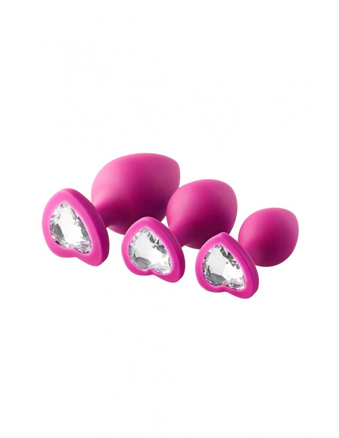 Flirts est la collection Dream Toys aux couleurs vives et aux emballages qui rappellent le printemps, le ciel bleu, les journées ensoleillées et les fleurs. Ce lot de 3 plugs en silicone est idéal pour les utilisateurs qui souhaitent varier la taille des plugs ou qui souhaitent s'entraîner du plus petit au plus grand. Les plugs roses ont une pierre précieuse en forme de cœur dans la base qui vous donne un look étincelant et séduisant. Profitez du plaisir anal avec cet ensemble de plugs Flirts 3 pièces.Ensemble de 3 plugs anaux Avec pierres précieuses en forme de cœurFabriqué en silicone lisse et ABSLongueur S – M – L : 7,3 cm - 8,0 cm - 9,3 cmLargeur S – M – L : 2,7 cm - 3,5 cm - 4,4 cm