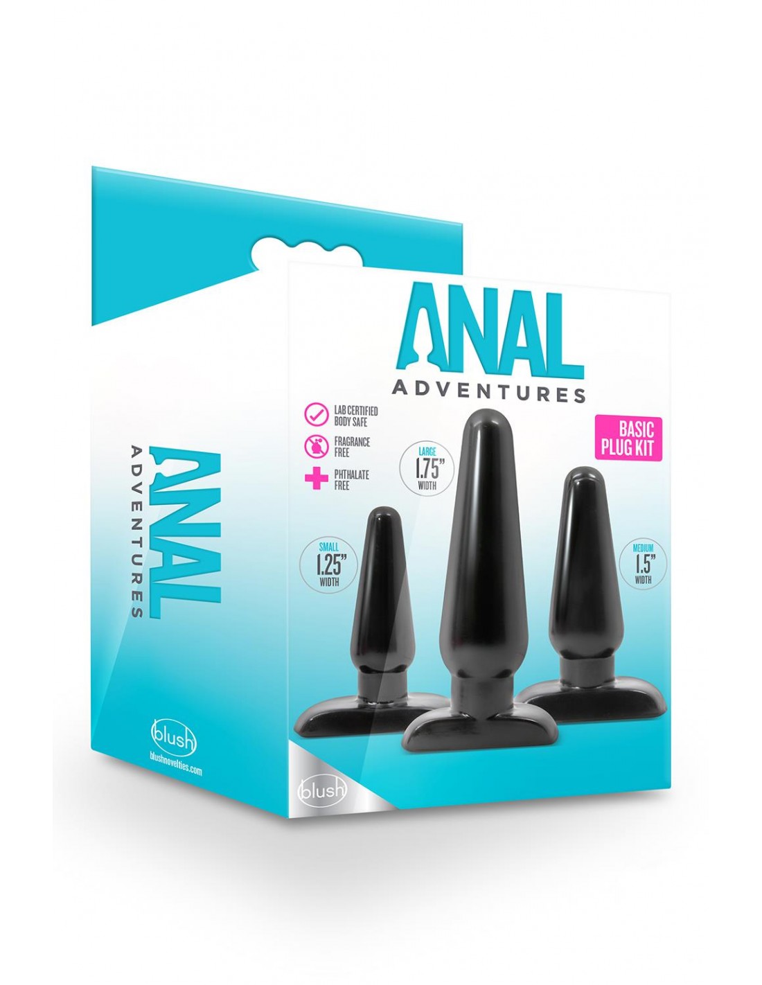 Pour tous ceux qui cherchent à explorer de nouvelles sensations anales seul ou avec un partenaire ! Anal Adventures propose de nombreuses options anatomiquement ciblées parmi lesquelles choisir. Le Basic Plug Kit comprend 3 plugs gradués pour un entraînement anal pratique. Leurs formes effilées sont faciles à insérer et vous aideront à prendre une taille plus confortable. Parfait pour explorer de nouvelles sensations. Taille au-dessus : les bouchons uniformément espacés vous permettent de vous étirer en toute sécurité et confortablement. Forme effilée pour une insertion facile. Fabriqué en PVC non poreux, ne contient pas de parfums, de phtalatex, de paraffines ou de latex. 1,5 pouces / 3,8 cmLargeLongueur 6,5 pouces / 16,5 cmLargeur 1,75 pouces / 4,4 cm.