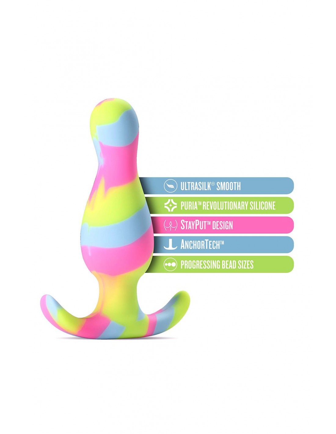 Moderne, élégant et beau – découvrez Avant Kaleido. Kaleido a une tête effilée pour une insertion facile et une courbe secondaire plus large pour des sensations supplémentaires pendant le jeu, le tout avec une belle gamme de couleurs vives ! Kaleido est Ultrasilk™ lisse et fabriqué en silicone Puria™ durci au platine, ce qui le rend sans danger pour le corps, sans phtalates, sans latex et sans parfum. Il est également doté de la technologie StayPut™ pour garantir qu'il ne se détache pas pendant l'utilisation et qu'il reste bien en place dans le corps. La base AnchorTech™ maintient le plug confortable pour un port à long terme !Tête effilée et deux courbes de plaisir pour des sensations supplémentairesBase AnchorTech™ soigneusement conçue pour la sécurité, le confort et la portabilitéLa conception Stayput™ maintient le produit bien en placeSilicone Puria™ pur platine durciUltrasilk® lisseÀ base d'eau, sans danger pour les lubrifiants hybridesMatériel : SiliconeSans phtalatesLongueur 3,5 pouces / 8,9 cmLongueur insérable 3 pouces / 7,6 cmLargeur 1 pouce / 2,5 cm