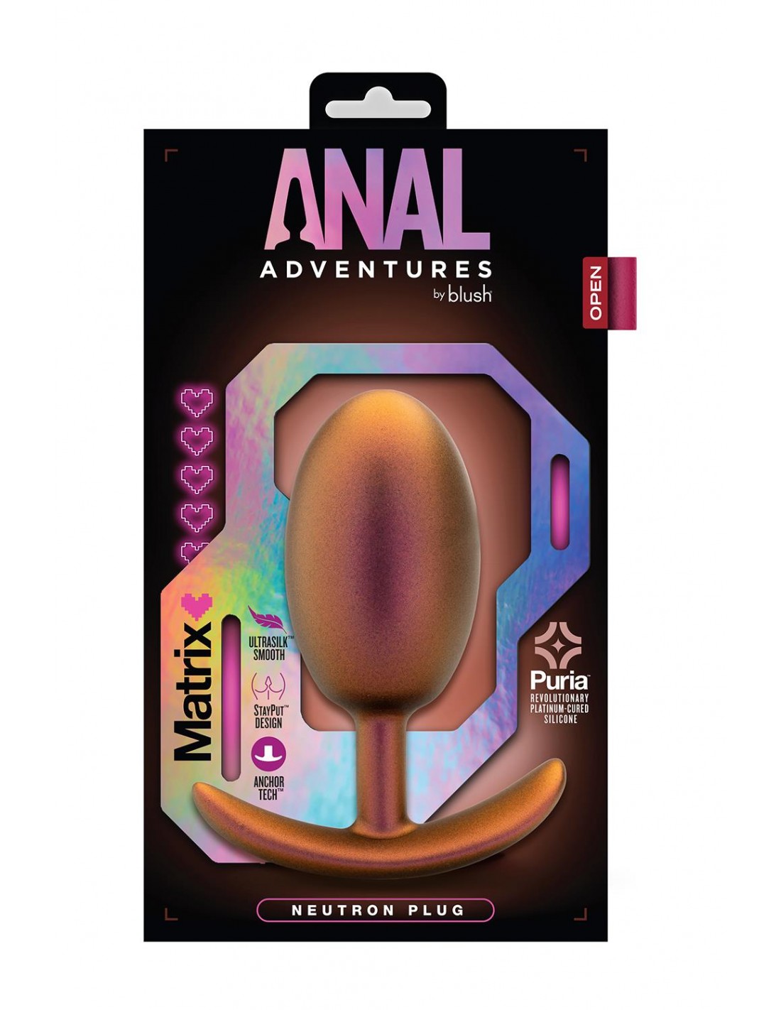 Pour tous ceux qui cherchent à explorer de nouvelles sensations anales seul ou avec un partenaire ! Anal Adventures Matrix est prêt à ravir ! Le Neutron Plug est arrondi pour une insertion facile et émet des vibrations via le mouvement de la perle intérieure lorsque vous bougez ! La technologie StayPut™ garantit que ce plug reste solidement à l'intérieur du corps et la base AnchorTech™ le maintient sûr et confortable pour un port à long terme. Le Neutron Plug est doté d'UltraSilk® doux et soyeux et est fabriqué en silicone Puria™ pur durci au platine, ce qui le rend sans danger pour le corps et sans phtalates, paraffines, parfums et latex. Trouvez votre plaisir avec Matrix ! Lorsqu'il s'agit de produits de plaisir, l'une des catégories les plus populaires est celle des jouets anaux. Ces produits sont conçus pour procurer des sensations intenses et un plaisir accru lors du jeu anal. Si vous recherchez un jouet anal de haute qualité capable de faire passer votre plaisir au niveau supérieur, ne cherchez plus, le plug Anal Adventures Matrix Neutron est prêt à vous faire planer vers les étoiles avec plaisir ! La belle finition irisée scintille et semble changer de couleur au fur et à mesure qu'elle bouge. Il est arrondi pour une insertion facile et émet des vibrations via le mouvement de la perle intérieure lorsque vous bougez ! Le design StayPut™ avec sa bosse évasée menant à sa tige flexible et fine, et sa base AnchorTech™ fine, incurvée et ferme garantit que le plug reste bien en place, et il est sûr et confortable pour un port à long terme. Le Neutron Plug est fabriqué à partir de notre silicone Puria™ pur durci au platine et enveloppé de notre UltraSilk® satiné et lisse, il offre une expérience douce et confortable pour tous les utilisateurs. Tous les plugs Anal Adventure Matrix sont sans danger pour le corps et exempts de phtalates, de paraffines, de parfum et de latex. Découvrez des plaisirs intersellaires avec Anal Adventure Matrix ! Le roulement à billes intérieur émet des vibrations lorsque vous bougez. Le design Stayput™ maintient le produit bien en place. La base AnchorTech™ le maintient en sécurité et confortable pour un port à long terme. Silicone Puria™ pur durci au platine Ultrasilk® lisse Longueur 4 pouces / 10,2 cm Longueur insérable 3 pouces / 7,6 cm son point le plus large