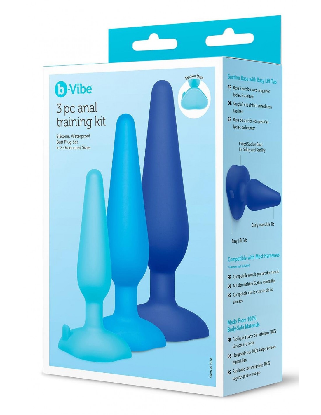 Préparez votre cul à la pénétration avec notre nouveau kit d'entraînement anal 3 pièces b-Vibe. Chaque plug est progressivement dimensionné pour une insertion confortable et une stimulation anale agréable. Fabriquée en silicone sans couture et sans danger pour le corps, la surface super lisse glisse sans effort. Les 3 bouchons de taille progressive sont étanches, fabriqués à partir de matériaux 100 % sans danger pour le corps, et comprennent une base d'aspiration qui permet de multiples positions et possibilités, que vous partiez à l'aventure en solo ou avec un partenaire. cmPoids : 62,5 g92,5 g116,8 gDiamètre du cou : 0,5" / 1,4 cmMatériau : Silicone sans danger pour le corpsChoisissez votre propre aventure anale. Offrez-vous des expériences anales multidimensionnelles avec le kit d'entraînement ultime en trois pièces, créé pour accueillir et aider les amateurs de plaisir anal curieux de tous niveaux. Satisfaire un corps ou séduire tout le monde ! Design fin pour une insertion facile. Fabriqué à partir de silicone sans couture et sans danger pour le corps, la surface incroyablement élégante glisse dans et sortez les fesses sans accroc ! Sélectionnés à partir de nos tailles les plus vendues, vous obtenez trois bouchons primés pour le prix d'un. Base d'aspiration nouvelle et améliorée Faites l'expérience de la conduite mains libres la plus simple de votre vie ! La base d'aspiration améliorée et la plus robuste du marché est idéale pour les modèles OF, les exhibitionnistes et à peu près tous ceux qui aiment prendre la position dominante.
