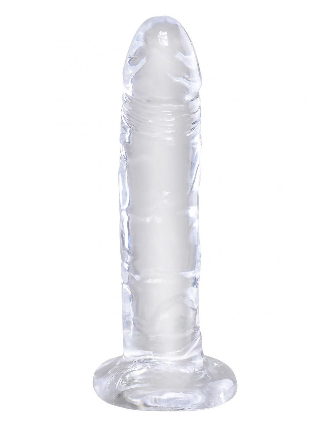 Le choix est clair ! Le gode King Cock® Clear 6"" combine un gode translucide avec un design de coq réaliste : tige flexible, veines détaillées et tête définie. La puissante base à ventouse adhère à presque toutes les surfaces planes et rend tous les harnais de gode compatibles. Créée pour rehausser votre expérience de plaisir, cette formule spécialement conçue est pratiquement inodore, non collante et facile à nettoyer.