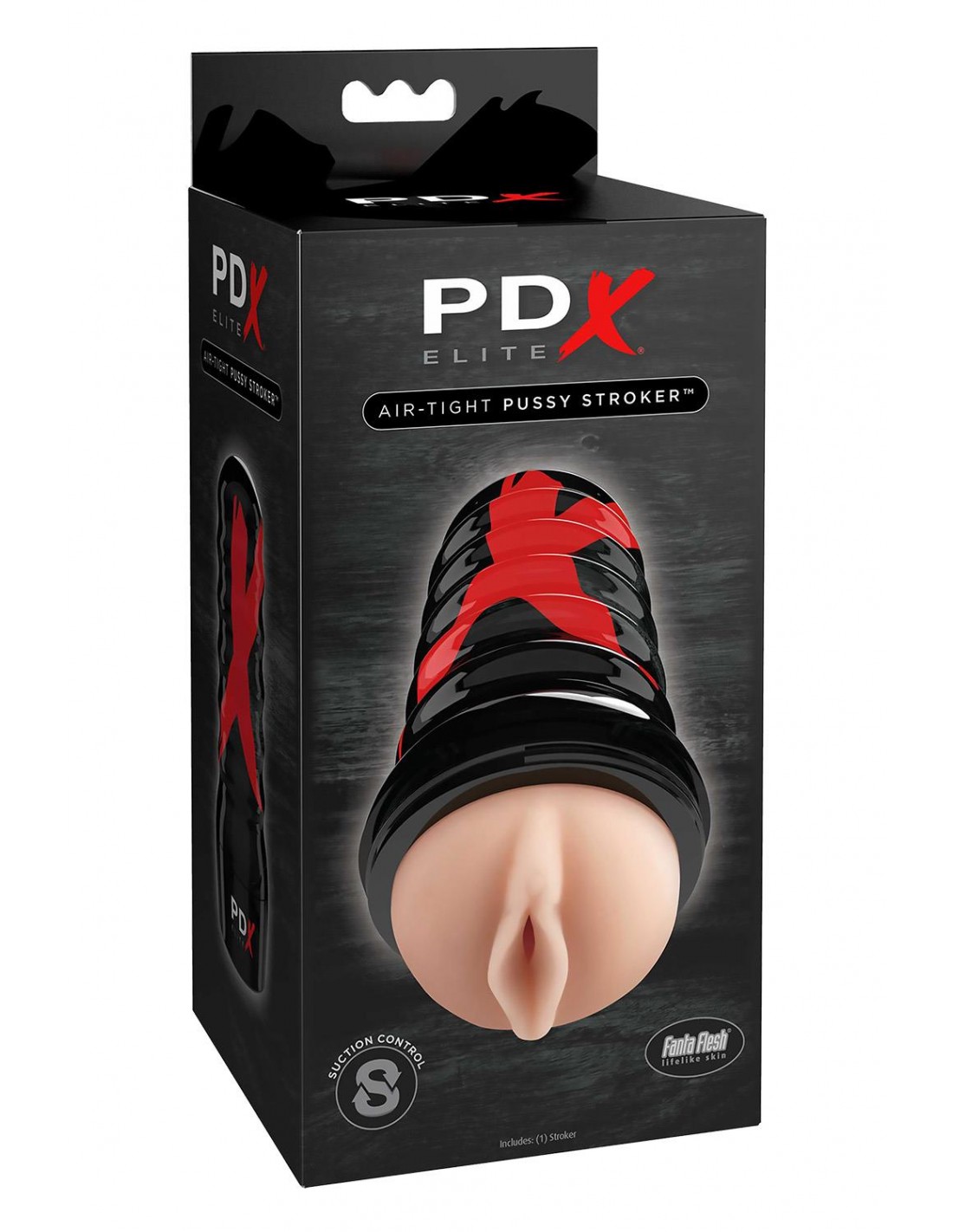 L'aspiration étanche à l'air garantit que la pointe ou les couilles pénètrent profondément, le PDX ELITE® Air-Tight Pussy Stroker vous offrira la meilleure expérience de masturbation de votre vie ! Avec un boîtier extérieur robuste et nervuré pour une prise solide, le Air-Tight Pussy Stroker crée une puissante aspiration qui traite chaque centimètre carré de votre bite. Une pochette intérieure Fanta Flesh® ultra douce et réaliste, bordée de nervures massantes, de bosses et de textures agréables, comblera vos fantasmes à chaque poussée. Pour une variété de sensations stimulantes, retirez simplement l'autocollant de contrôle d'aspiration et utilisez votre pouce pour régler les niveaux manuellement. La pochette intérieure Fanta Flesh est également amovible pour le plaisir de la main.
