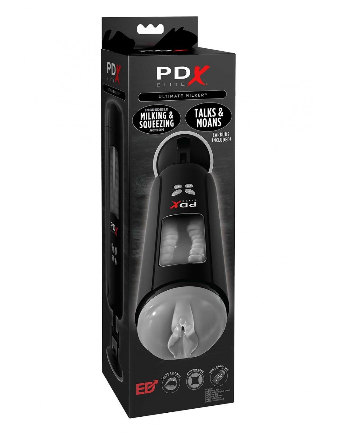 The Ultimate Milker - Présentation de la première technologie de masturbation de trayeur en son genre conçue pour entourer entièrement votre tige avec une stimulation giratoire et pressante pour une expérience de plaisir ultime ! Une fenêtre transparente vous permet de visualiser l'action alors que chaque centimètre carré de votre bite est traite encore et encore par 10 fonctions rotatives et giratoires, plus 5 niveaux de vitesse actifs, le tout alimenté par un moteur rechargeable pratique. Le manchon interne en TPE multi-nervuré est doublé de textures incroyablement satisfaisantes pour améliorer le plaisir de rotation et comporte une extrémité fermée pour intensifier davantage l'aspiration naturelle. Pour profiter d'une masturbation rotative entièrement automatisée, appuyez simplement sur le bouton pour lancer la puissance de traite active. Des gémissements sexy et respirants peuvent également être activés pour une excitation érotique intensifiée ! Explorez vos options ! Le boîtier extérieur robuste avec une ventouse réglable et verrouillable peut être réglé dans votre position mains libres préférée, ou retirer le manchon intérieur en TPE pour un plaisir portatif.