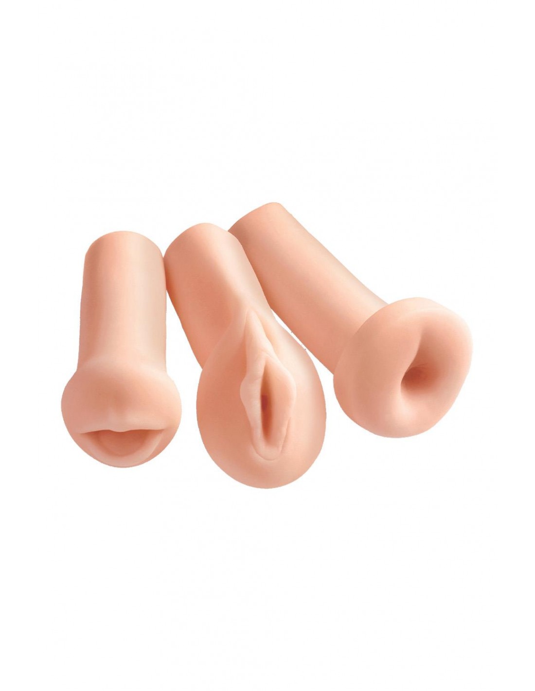 Pourquoi choisir un trou de baise préféré quand on peut avoir les trois ? Ce trio alléchant de caresseurs All 3 Holes est le kit parfait pour les sessions de branlette ultimes ! Les masturbateurs ultra-doux sont fabriqués à partir de Fanta Flesh® velouté et s'enroulent autour de chaque centimètre carré de votre tige de plaisir. Choisissez entre une bouche grande ouverte, une chatte écartée ou un cul vierge et serré, ou profitez des trois ! Glissez à l'intérieur de chacun des caresseurs et vous jurerez qu'ils ressemblent à de vrais... mais en mieux !