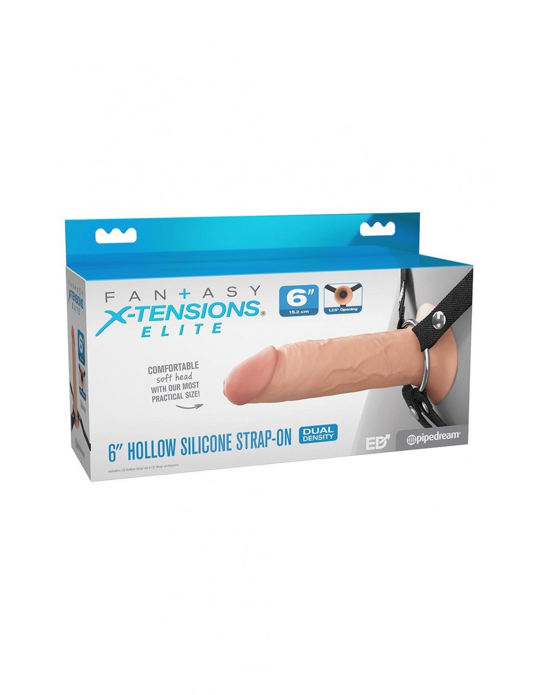 FANTASY X-TENSIONS ELITE 6" SILICONE HOLLOW STRAP-ON - DUAL DENSITY - LIGHT
