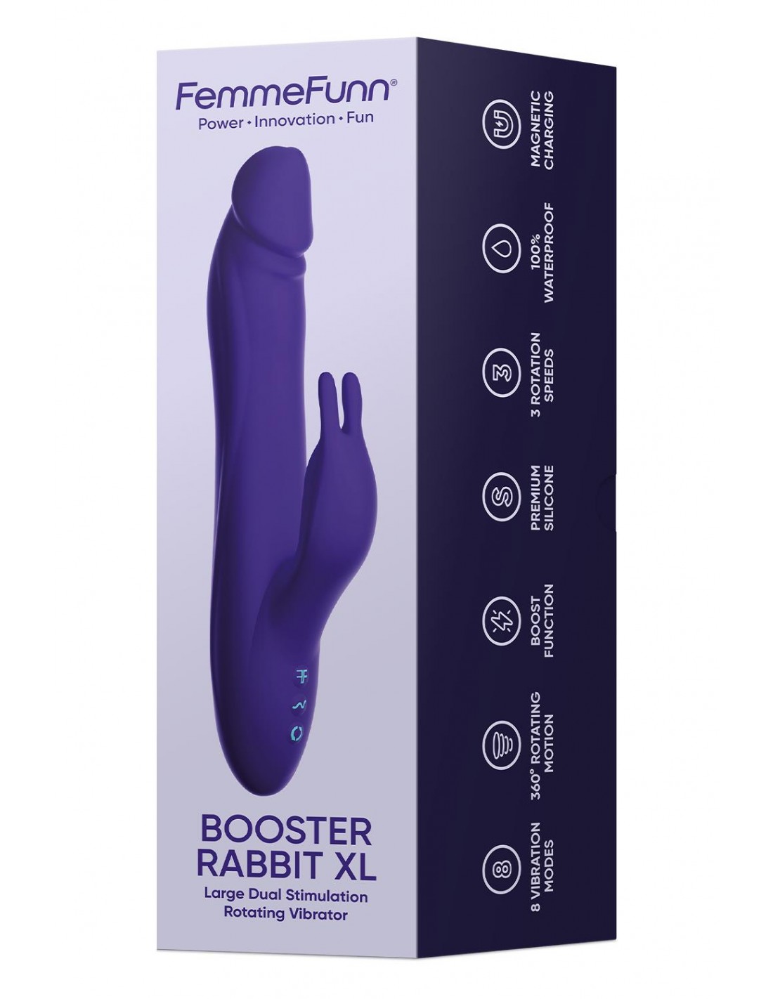 Le Booster Rabbit était le deuxième produit jamais conçu par FemmeFunn. Une version innovante du vibrateur lapin traditionnel, il a été le tout premier à disposer d'un mouvement de rotation et d'une fonction boost. Associé au toucher doux mais puissant du stimulateur externe « lapin », il est devenu la référence pour les orgasmes mixtes. Maintenant, tout comme le FemmFunn Ultra Wand XL – vous avez demandé plus grand et plus fort, alors FemmeFunn vous l'a livré. Le Booster Rabbit XL offre les mêmes fonctions que l'original, mais avec plus de longueur, plus de force et un chargeur magnétique mis à jour qui se charge désormais rapidement ! Mode Boost : faites passer vos sessions en solo ou en partenariat au niveau supérieur avec notre fonction exclusive Boost Mode. Cette caractéristique caractéristique fournit une explosion soudaine de puissance supplémentaire pour atteindre le bonheur orgasmique plus rapidement et plus intensément que jamais. Double stimulation : bien que l'arbre rotatif soit certainement notre fonctionnalité préférée, nous serions fous de ne pas mentionner le bras externe (oreilles de lapin). Conçues pour stimuler le clitoris, ces oreilles externes procurent un plaisir extrême. Conseil de pro : arrosez-les d'un lubrifiant à base d'eau avant de commencer, vous pourrez nous remercier plus tard. Conception étanche : n'ayez pas peur de vous mouiller et de vous déchaîner avec le Booster Rabbit XL. Cette ambiance est 100 % étanche, vous pouvez donc changer votre routine avec une séance chauffée sous la douche ou dans le bain. Charge intelligente à remplissage rapide : le Booster Rabbit XL est doté de notre technologie de charge rapide afin que vous n'ayez jamais à vous soucier de manquer de piles au mauvais moment. Matériaux sans danger pour le corps : Chez Femme Funn, nous accordons la priorité au plaisir et à la sécurité de nos clients, et c'est pourquoi tous nos jouets sont fabriqués avec des matériaux de la plus haute qualité et sans danger pour le corps. Vous n'avez pas à vous soucier des matériaux bon marché ou nocifs qui touchent vos zones sensibles avec nos produits. La pointe incurvée atteint tous les bons endroits et zones de plaisir. Le mécanisme rotatif crée un mouvement circulaire stimulant. 7 vibrations externes puissantes, exactement là où vous en avez besoin. Mode Boost pour passer à la vitesse supérieure. 17,5 cmLargeur : 1,3 pouces / 3,3 cmBatterie : Li-ionTension de charge : 5VRautonomie : Env. 1 heure après une charge complèteTemps de charge : Env. 1,5 heuresRemarque sur l'autonomie : les estimations de la durée de vie de la batterie ne sont que cela : des estimations. La durée de vie réelle de la batterie varie en fonction de la fréquence d'utilisation, de l'âge de la batterie, de la température de l'appareil, etc.